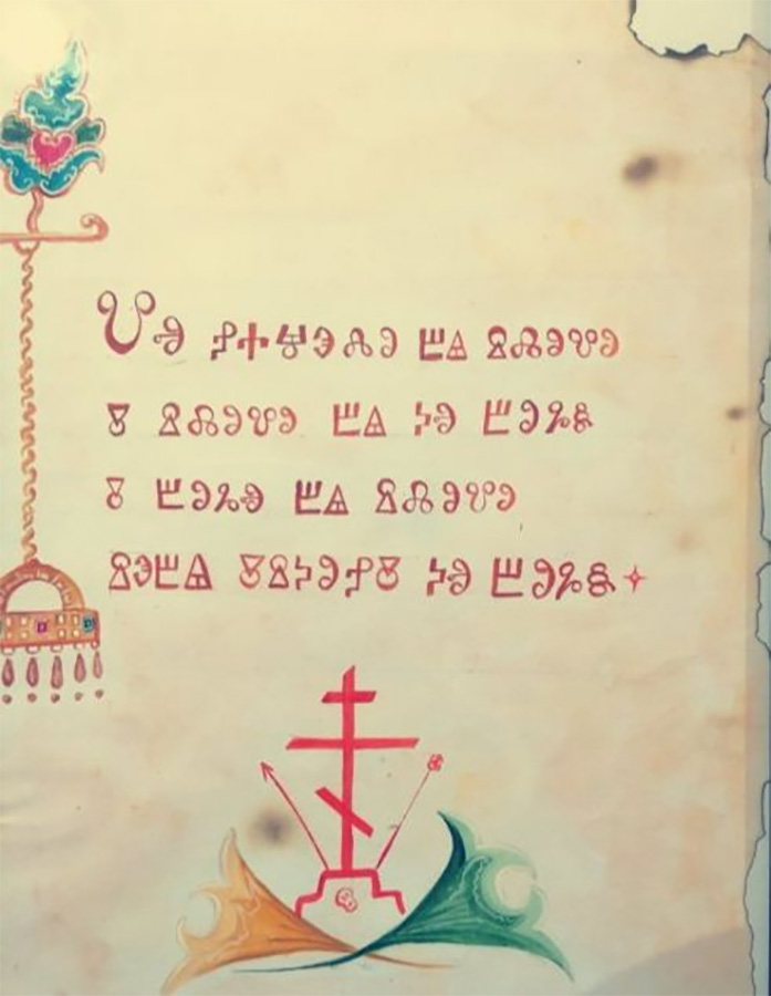 Монахињата Екатерина во предавањето нагласи дека писмото е кирилично, односно преписот е транскрипција од глаголичкиот превод на Апостол на светите Кирил и Методиј, на реформираното словенско писмо – кирилица, кое е создадено од Константин Преславски на основа на грчкото писмо, односно, кон 24 -те букви од грчкиот унцијал се додадени 14 (всушност 12 ) букви од глаголицата, за бележење на специфичните словенски гласови кои според зборовите на Црноризец Храбар, и неможат да се пишуваат со грчки букви.