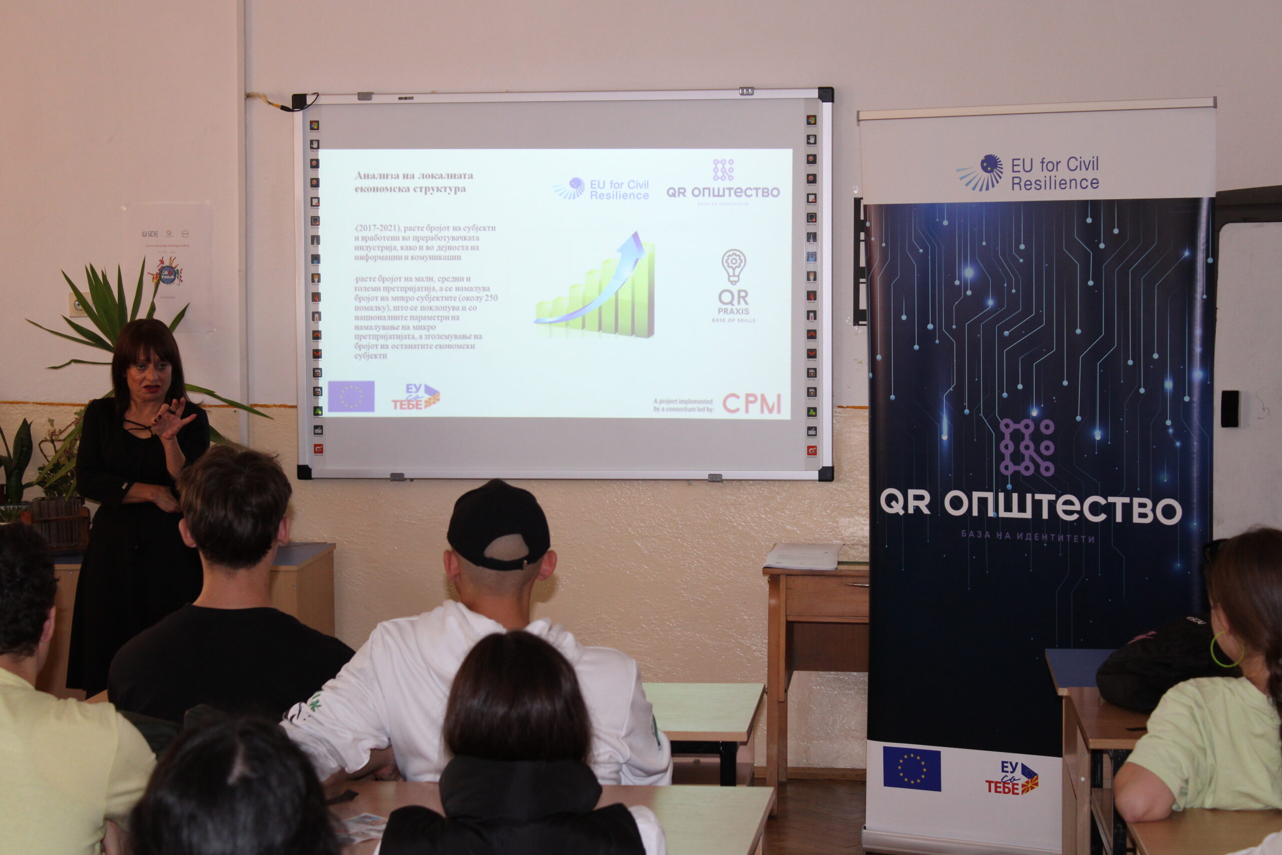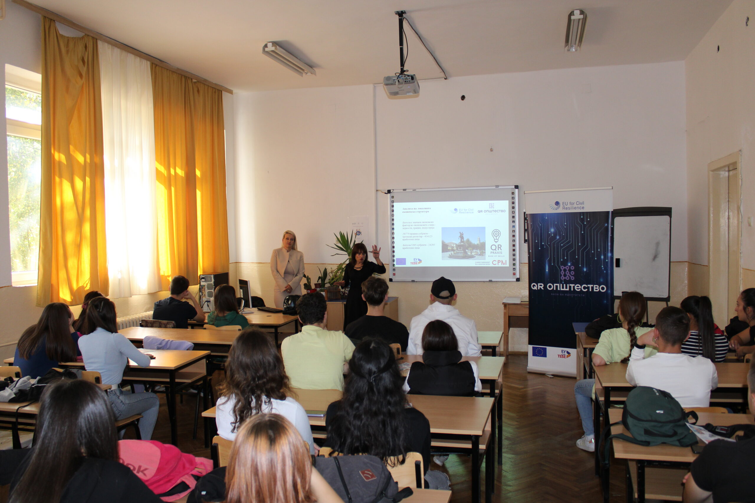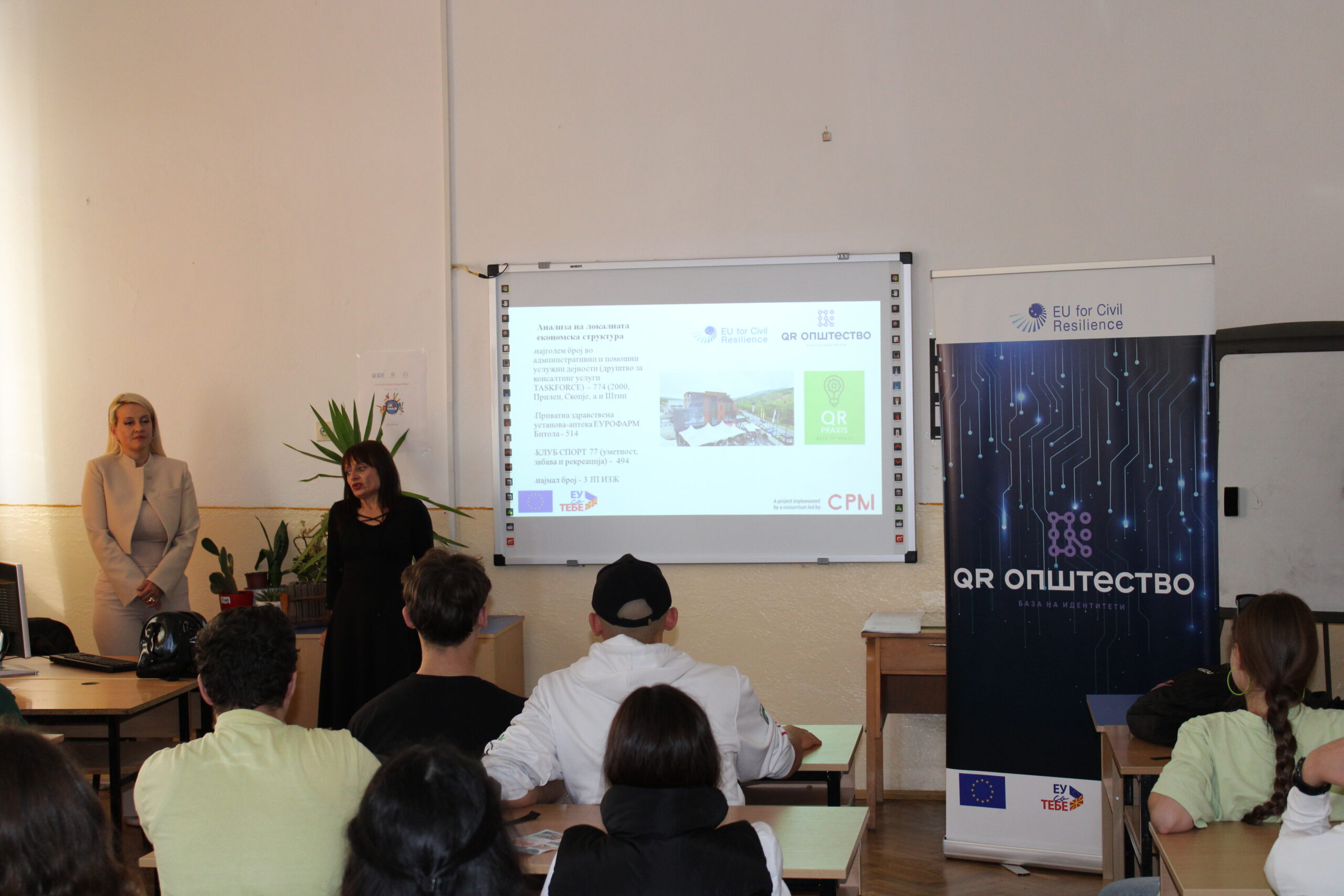 Проектот на Здружението за афирмација на дигиталната култура QR Општество од Битола, кој се реализира во рамките на „Механизмот на Европската Унија за Граѓанска Отпорност“ e поддржан од Европската Унија, а имплементиран од CPM Конзорциумот од Естонија, е замислен да ја поттикне комуникацијата меѓу бизнис секторот и учениците во средните стручни училишта во Битола, кои се обучуваат во струки кои се сметаат за дефицитарни според Агенцијата за вработување и Регионалната Стопанска Комора.