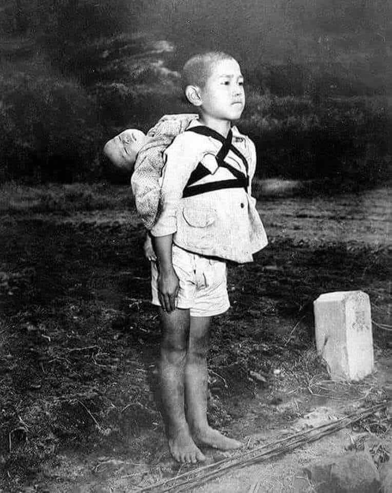Ова е една од најтажните фотографии е направена по атомскиот напад на Нагасаки во Јапонија во 1945 година. Нејзината приказната потсетува на „Гробиштата на светулките“, на јапонската анимирана драма од 1988 година.