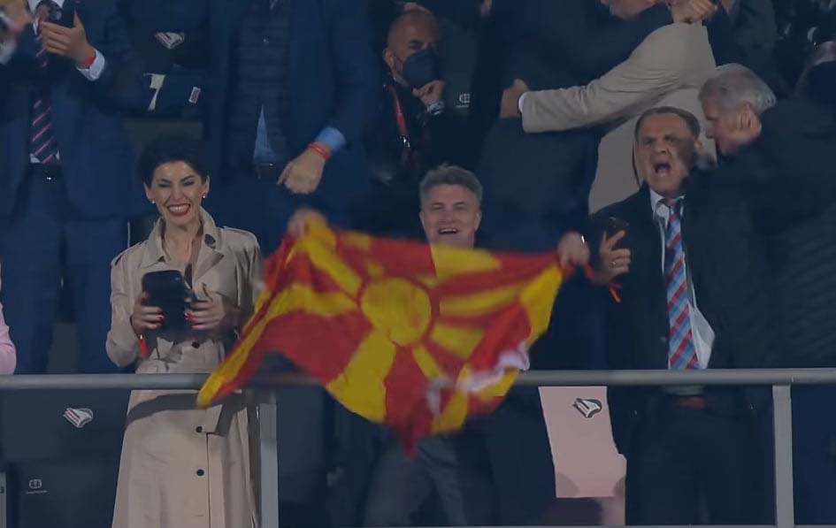 Министерот за правда Никола Тупанчевски, вишата јавна обвинителка Фатиме Фетаи и претседателот на Основниот суд Кавадарци Лазар Нанев во ложата на стадионот „Ренцо Барбера“ во Палермо, како ВИП навивачи во натпреварот Македонија – Италија.